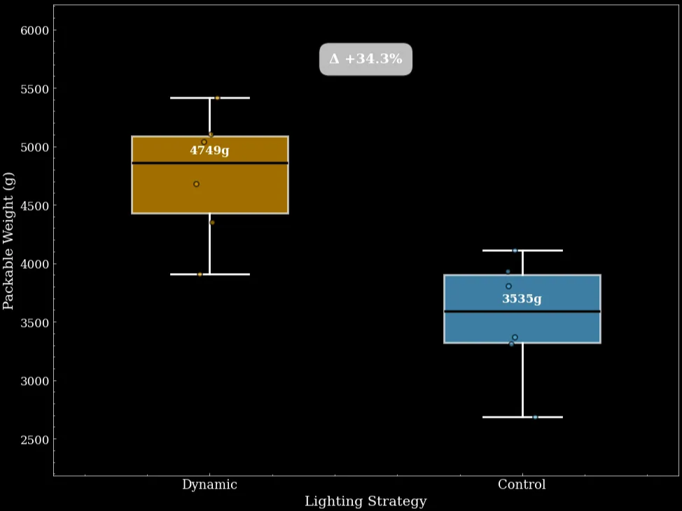 Dynamic Lighting Optimization — Ljusgårda, a leading leafy-greens producer, leveraged Gardin to continuously adapt lighting to plant physiology rather than static schedules. This resulted in a 34% increase in yield, illustrating the power of real-time biological feedback to unlock significant production gains.
