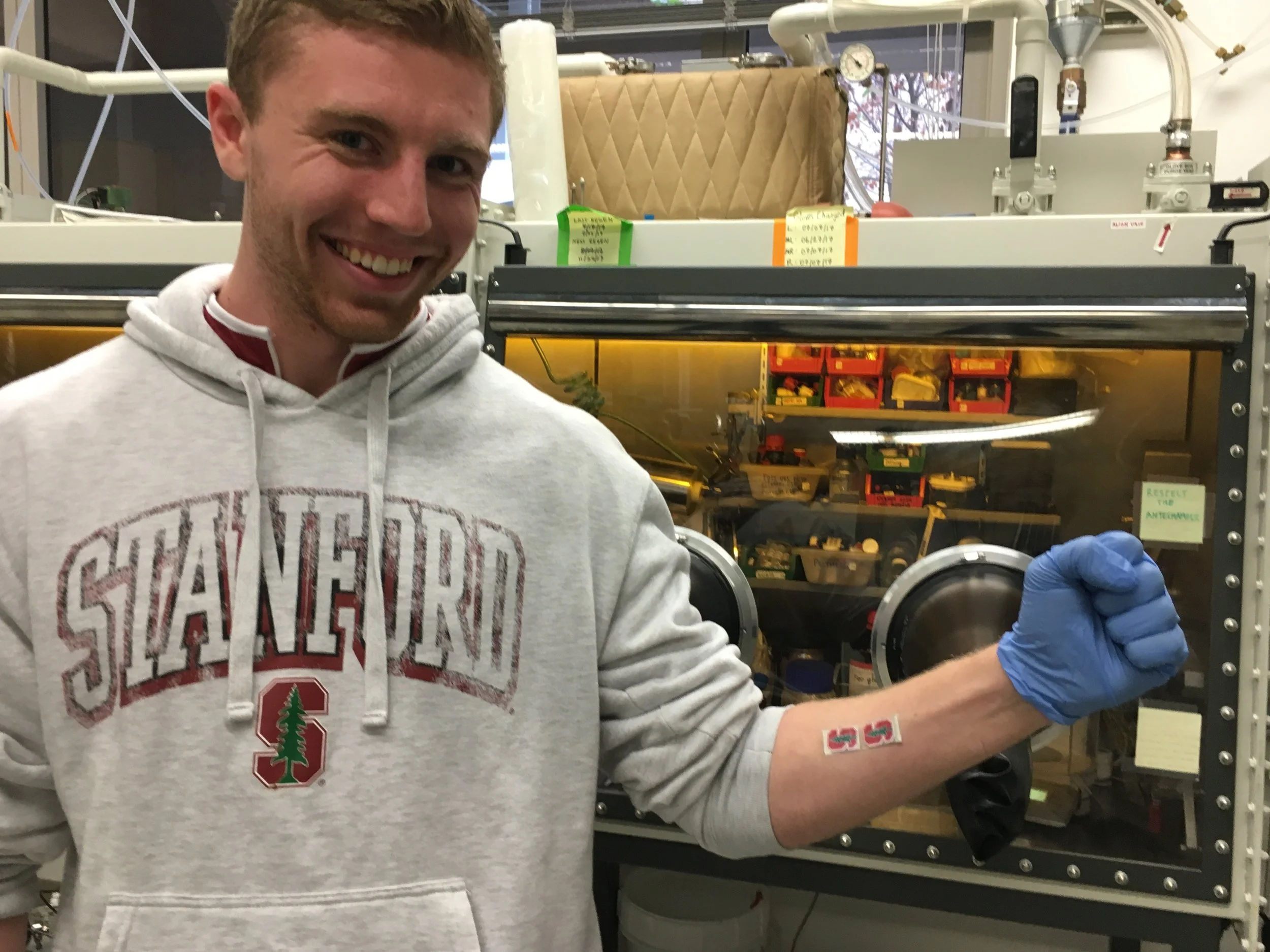 Ross conducting research while at Stanford University, helping to develop a biosensor to test stress levels in sweat.