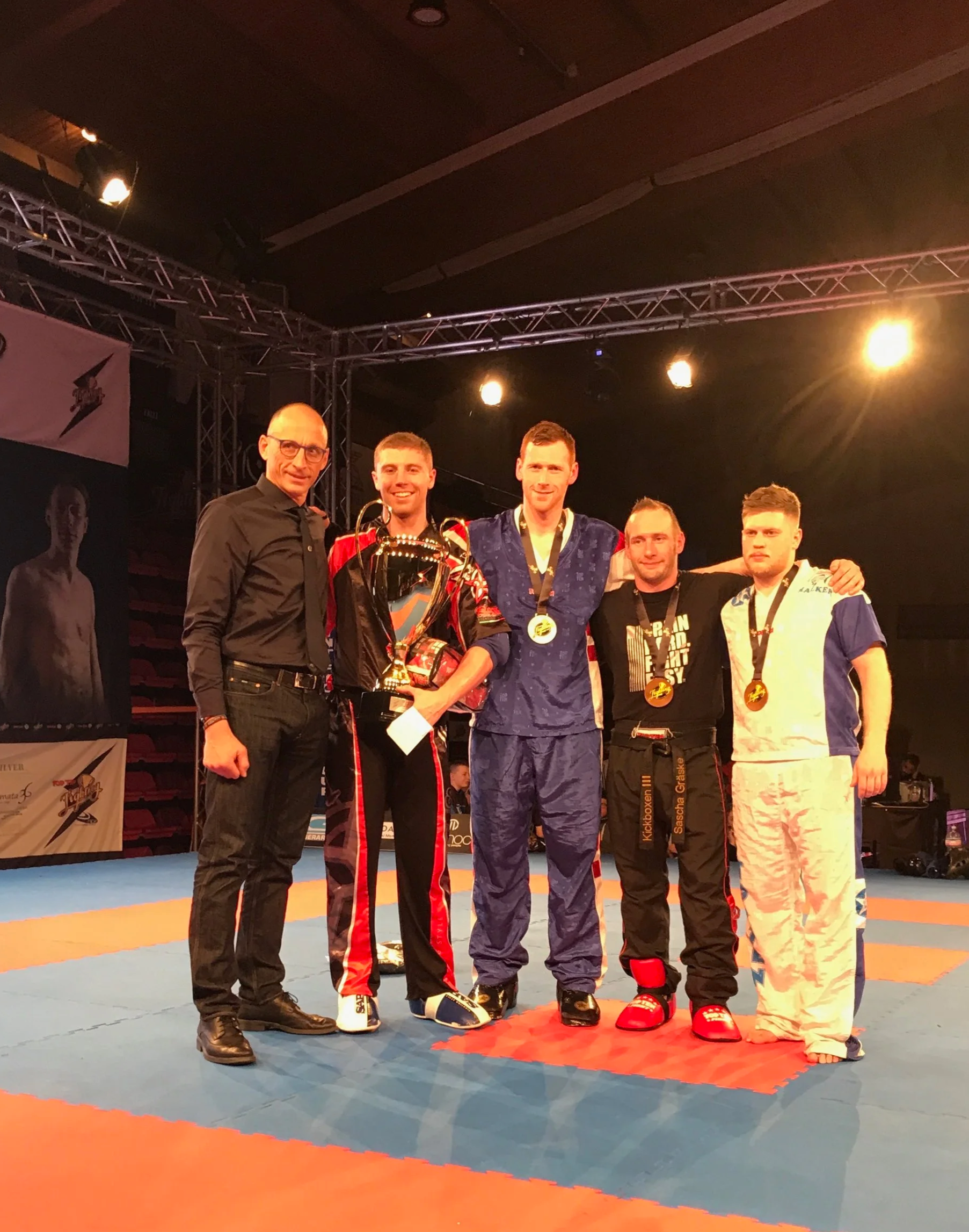 Ross after winning the Grand Champion title at a kickboxing tournament in Milan, Italy.